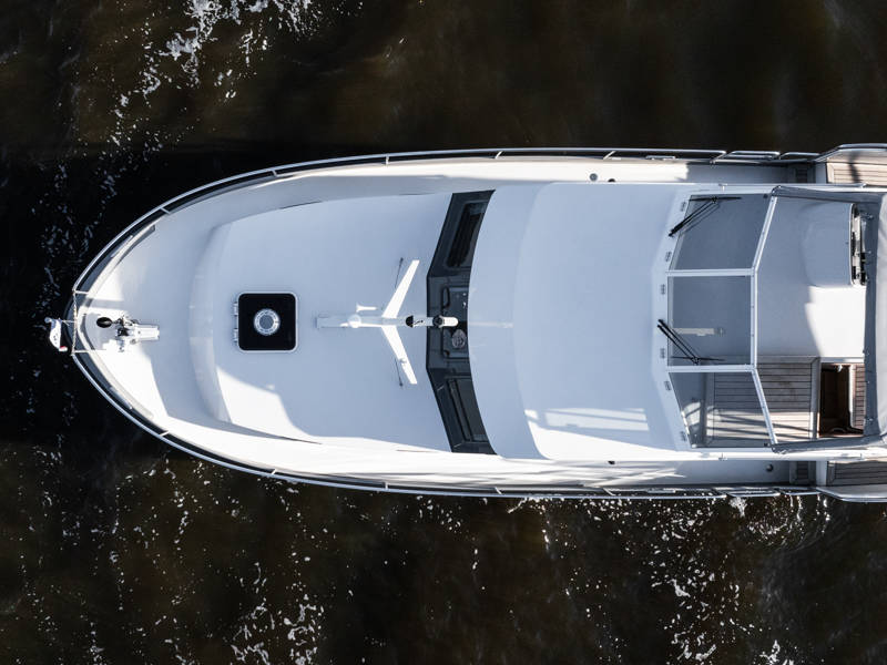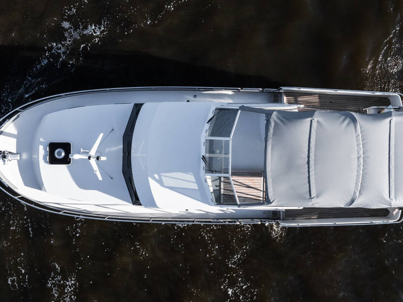 Deze cabrio is overigens rondom te openen bij zomers weer. Het jacht is uitgerust met een compleet navigatiepakket.