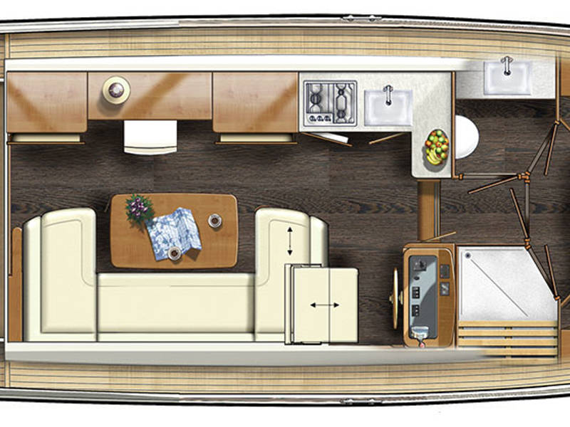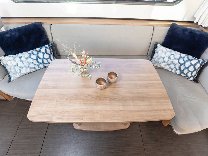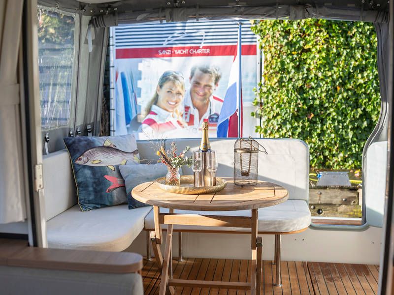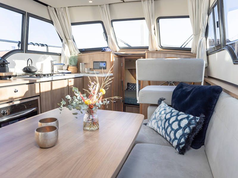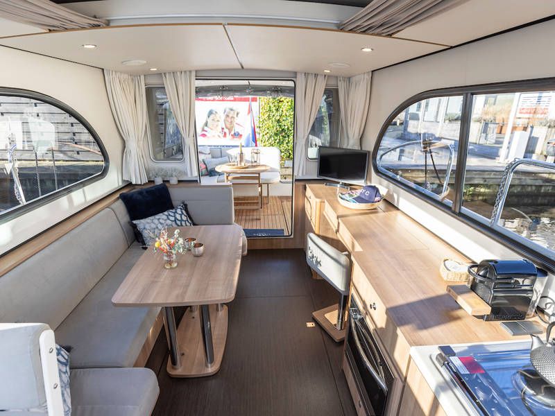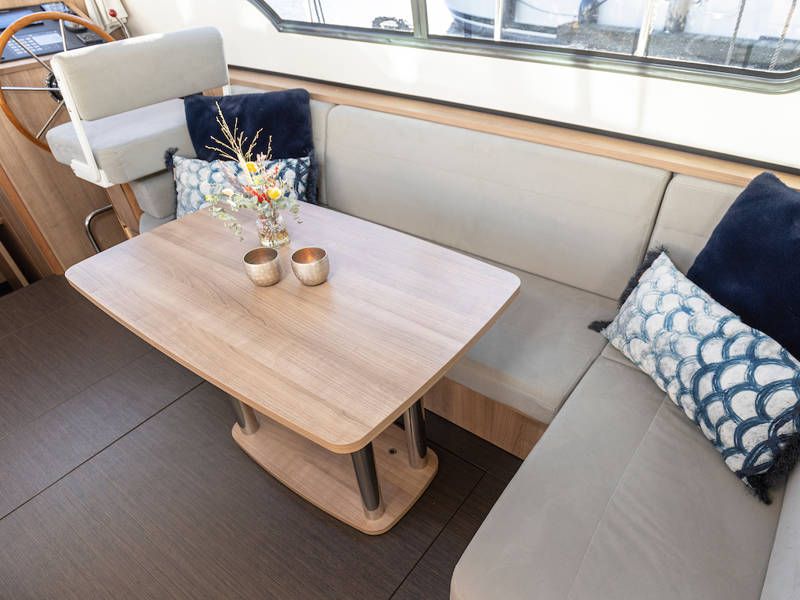 De salon is uitgerust met grote openslaande deuren welke toegang geven tot de open kuip, waar een royale zitbank is. Deze kuip is afsluitbaar en verwarmbaar, voor veel gezellige uurtjes aan boord.