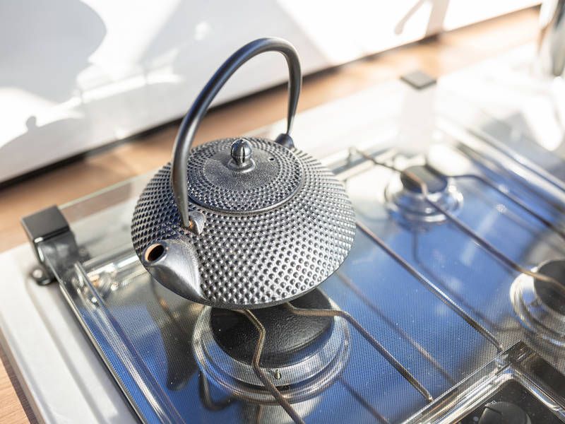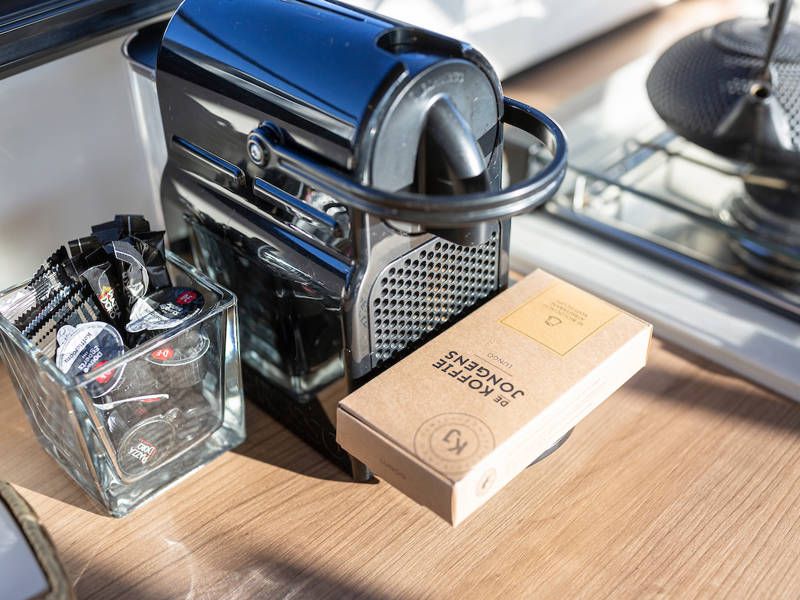 De keuken is aan bakboordzijde en volledig uitgerust met o.a. een kooktoestel, Nespressoapparaat en een complete keukeninventaris.