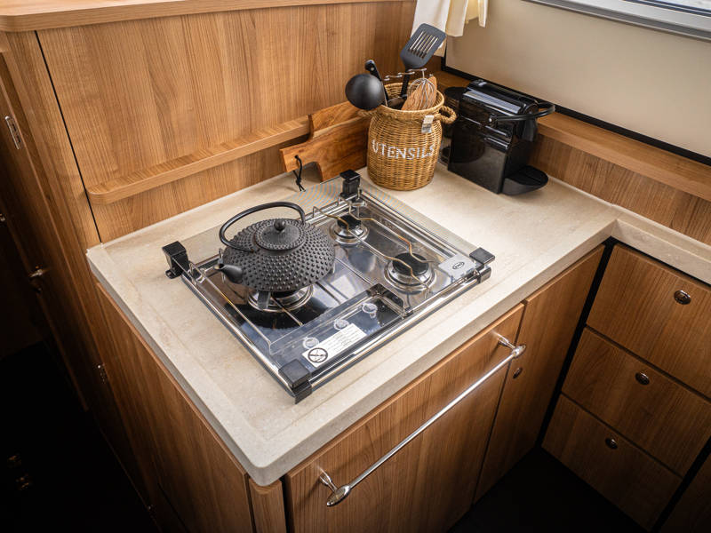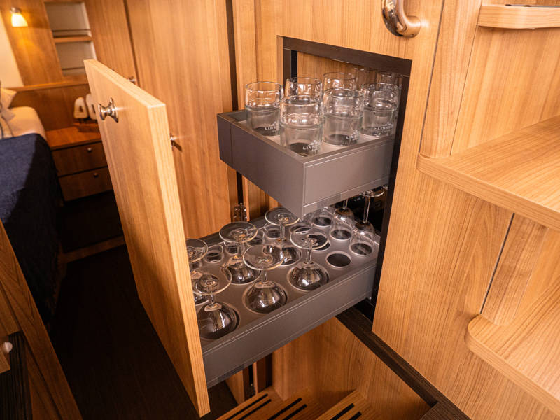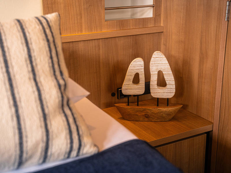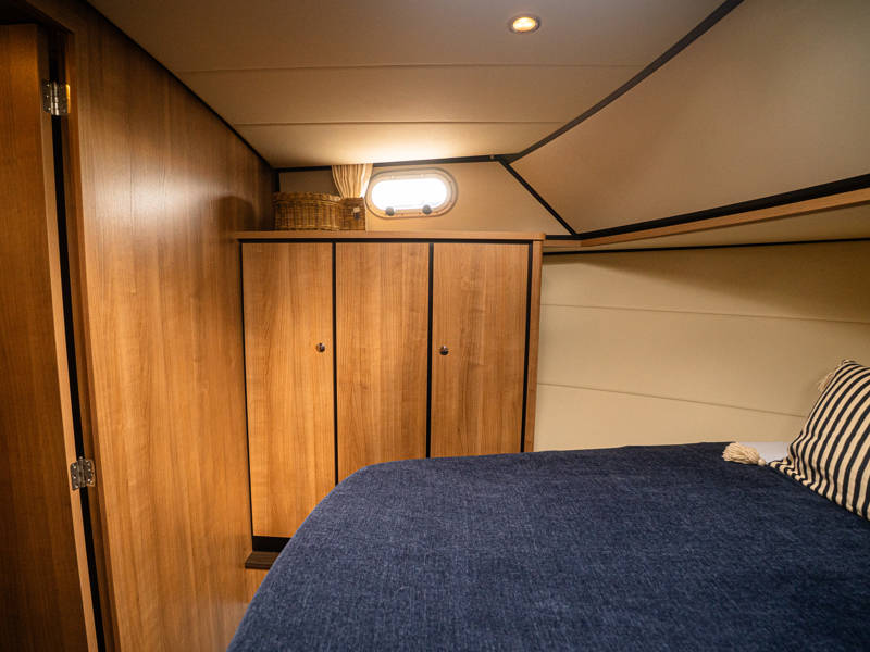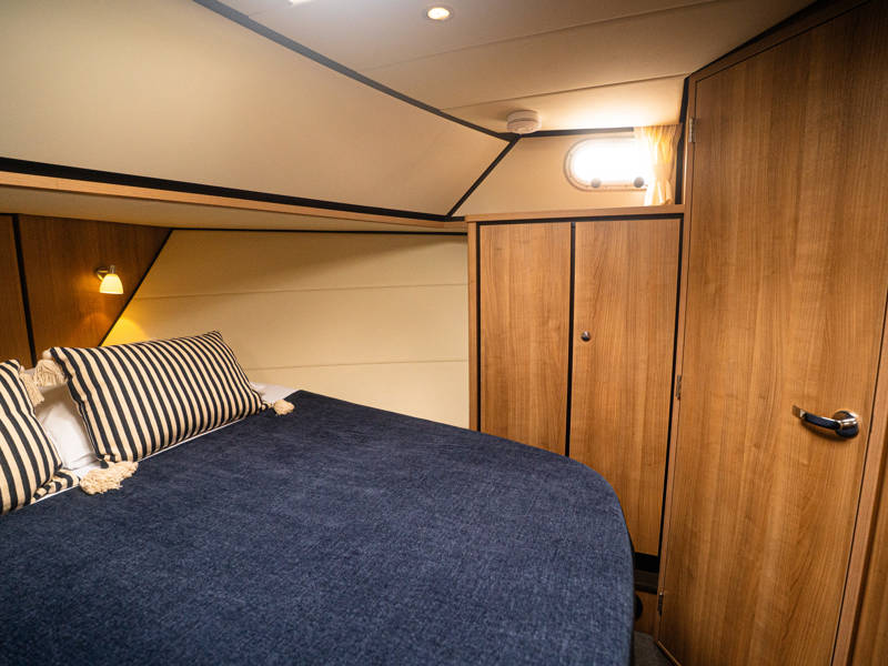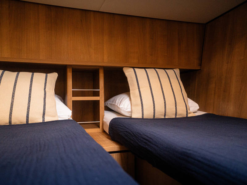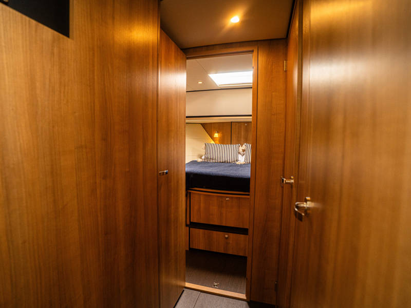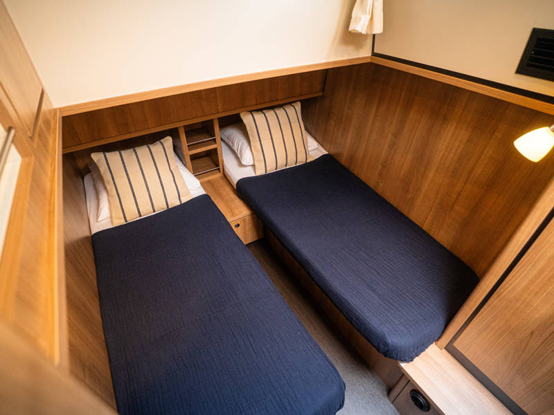 Daarnaast beschikt dit type jacht over een royale 3e hut met 2 éénpersoons bedden en veel kastruimte.