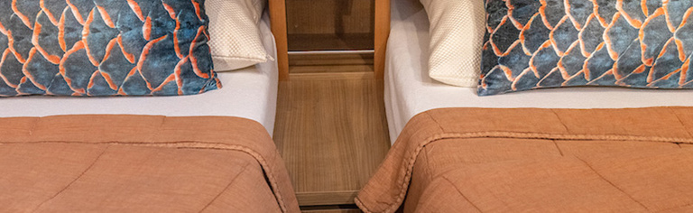 Daarnaast beschikt dit type jacht over een royale 3e hut met 2 éénpersoons bedden en veel kastruimte.